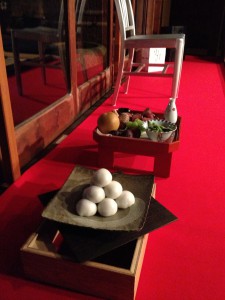 台風が上陸したこともあってあいにくのお天気でしたが、お供えでお月見気分を演出します。