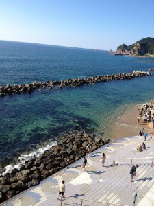 透き通った海の飛び込みたいのをぐっと我慢して会場へ向かいます。