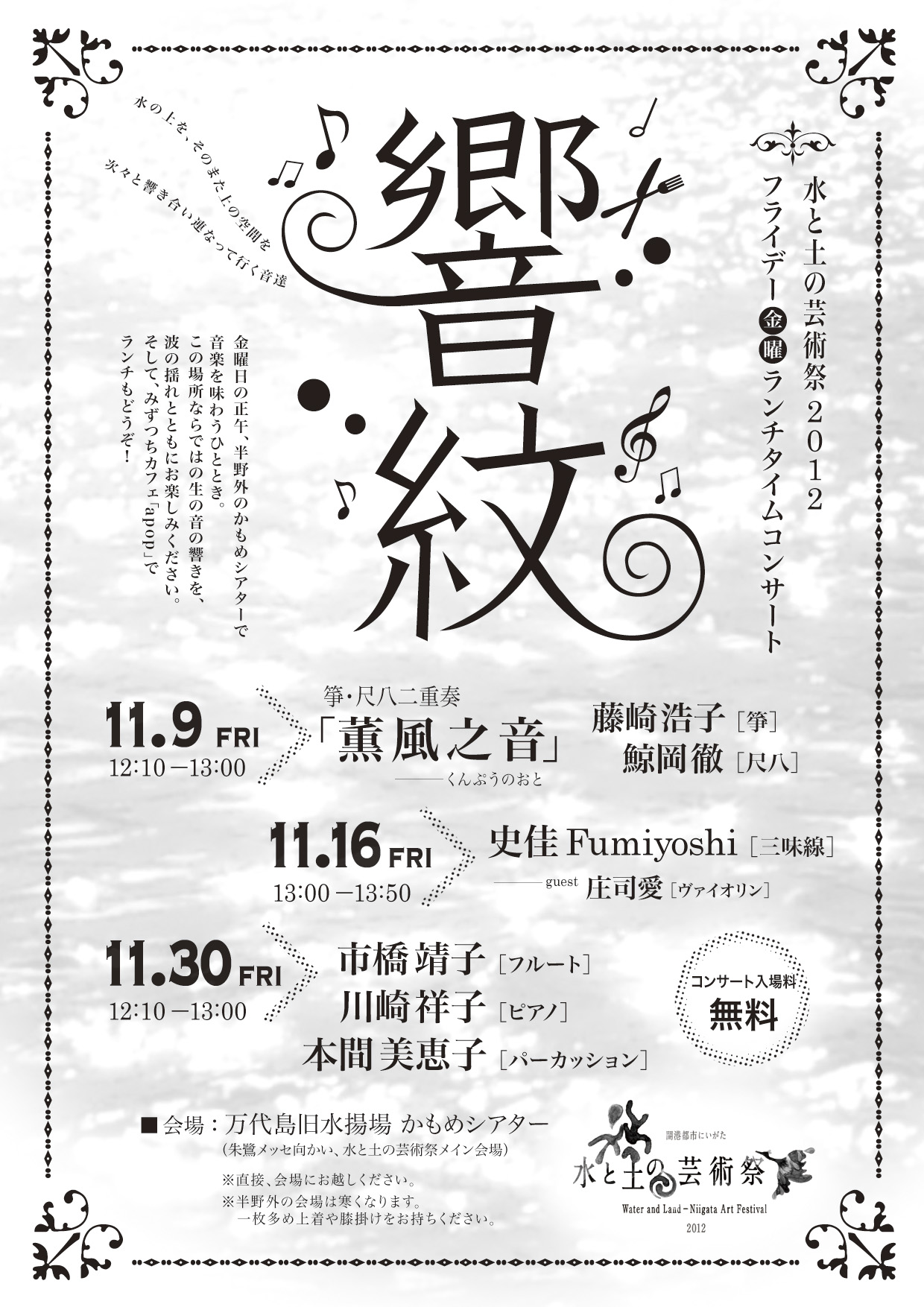 水と土の芸術祭2012メイン会場にて開催されるフライデーランチコンサートに出演決定!!!